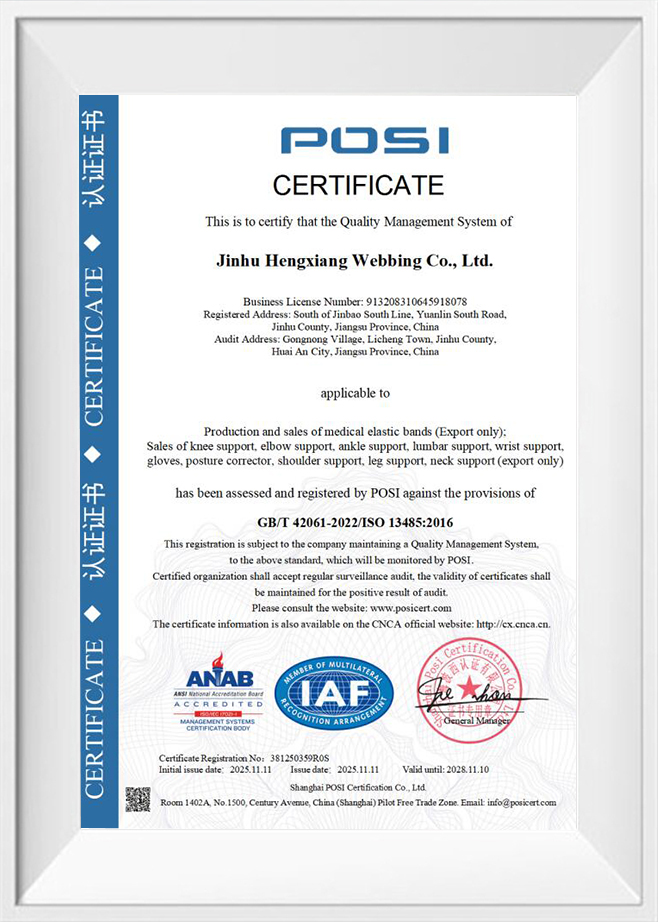 Цзиньху Хэнсян Веббинг Ко., Лтд. был основан в 2005 году и расположен в уезде Цзиньху города Хуайань провинции Цзянсу, Китай, с удобным транспортным доступом. Мы являемся профессиональным производителем, занимающимся исследованиями, разработками, производством, продажей и обслуживанием эластичных и неэластичных лент, особенно используемых для спортивной поддержки и ортопедических брекетов. Строгий контроль качества осуществляется на каждом этапе: от поиска материалов, обработки и тестирования до упаковки. Наши опытные сотрудники, преданные своему делу и заботящиеся о клиентах, всегда готовы обсудить ваши требования и обеспечить полное удовлетворение потребностей клиентов.